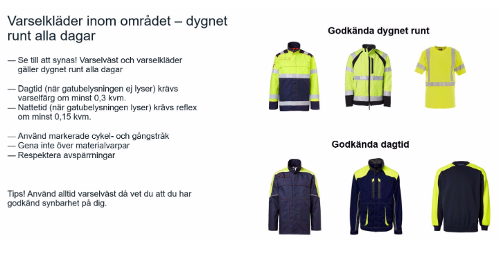 Enligt våra ordningsregler för Sandvikens Industripark ska alla vid utomhusvistelse bära varselväst eller varselkläder. Västen ska bäras på kroppen och vara stängd i fram.