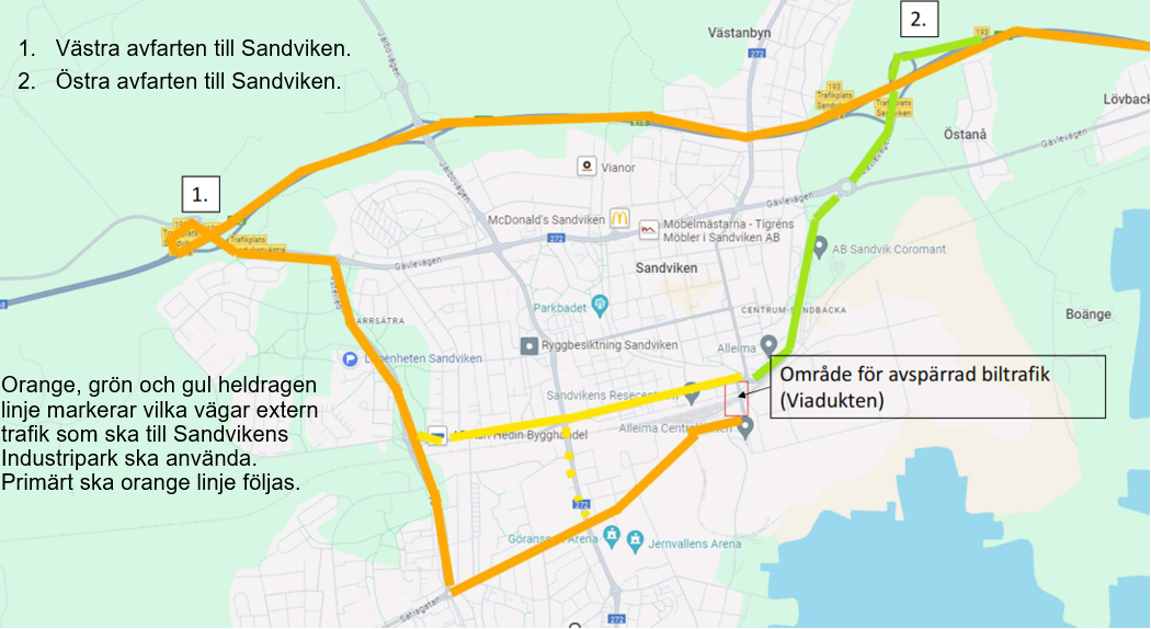 Under vissa dagar kan gång- och cykeltrafik behöva vänta innan passage sker, detta kommuniceras via personal på plats. De som kan rekommenderas generellt att ta en annan väg även med som gång- och cykeltrafikant så länge reparationsarbetena pågår, men framförallt under detta tillfälle som är planerat till onsdag-torsdag v.35.