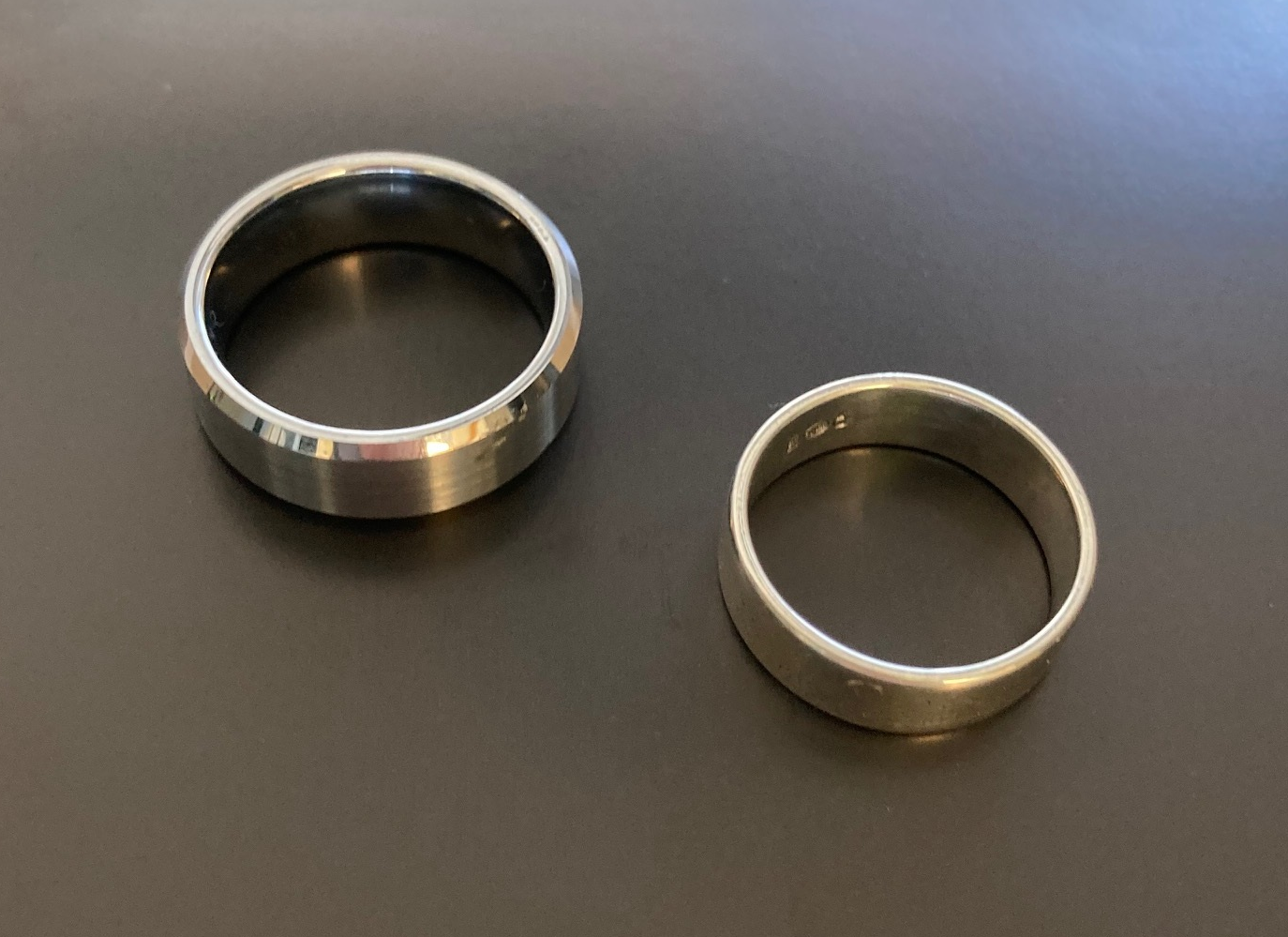 Det finns text graverad på insidan av båda ringarna. Set det ut som en ring du har tappat? Gå till Centralporten och berätta vad det är för text graverad för att få den återlämnad.