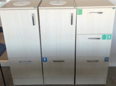 Ett led i vårt miljöarbete är att vi säkerställer att vi sorterar vårt avfall korrekt. Vi har en väl utbyggd infrastruktur för att hantera avfall, allt från sortering i våra matsalar till hur vi återvinner material från produktionen.